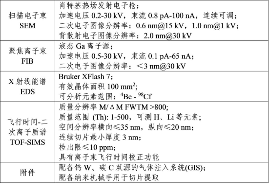 电子束成像及分析(SEM-EDS)、FIB加工及常规TEM制样;TOF-SIMS处于调试状态,暂未开放。