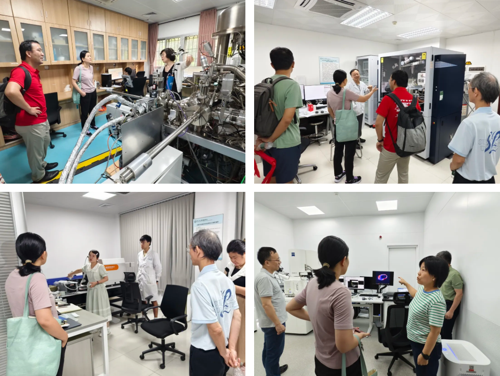 会后,黄玲凌书记带领物理学院一行参观了300 kV冷冻透射电镜、飞行时间二次离子质谱仪、飞秒瞬态吸收系统、阴极荧光电子扫描显微镜、X射线显微镜、液态金属靶X射线单晶衍射仪等分析测试中心大型科研仪器,双方就科学研究工作进行了深入交流。