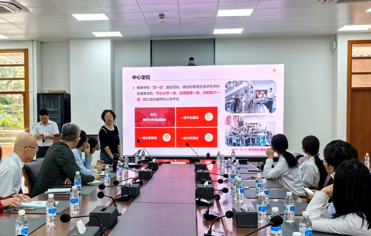 分析测试中心党支部程小宁同志详细解读了东校园分中心的仪器设备布局、应用领域与核心技术优势,着重表达了诚挚意愿:期待围绕具体科研项目与地理学院科研团队开展更广泛、更深入的协同研究,推动仪器平台优势与学科研究需求精准对接,凝聚科研合力共促创新突破。