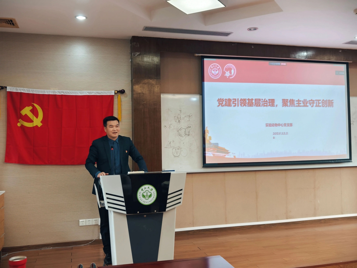 实验动物中心党支部书记蔡卫斌同志和分析测试中心党支部黄玲凌同志分别介绍各自党支部的建设情况、作为校级公共服务平台对学校科技事业发展和粤港澳大湾区建设的支撑情况以及未来规划。