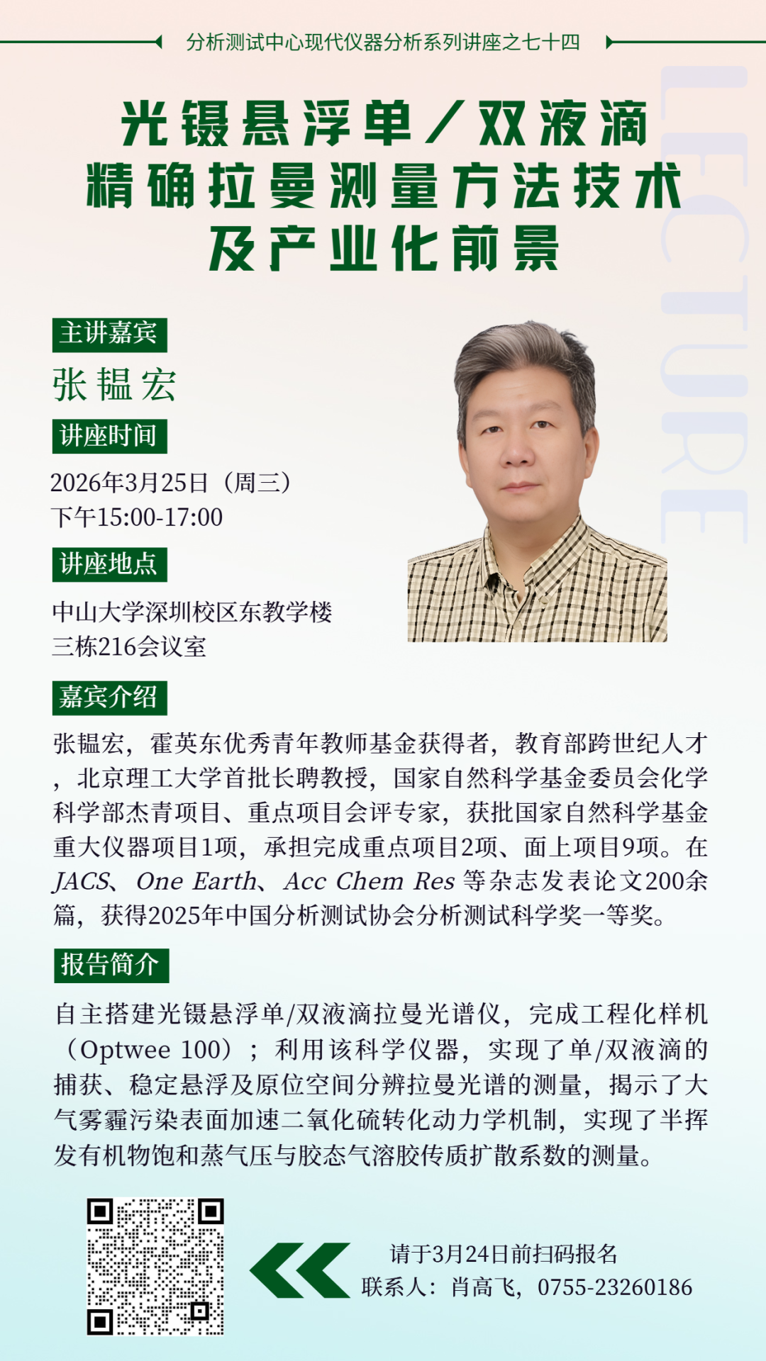 讲座报名 | 光镊悬浮单/双液滴精确拉曼测量方法技术及产业化前景