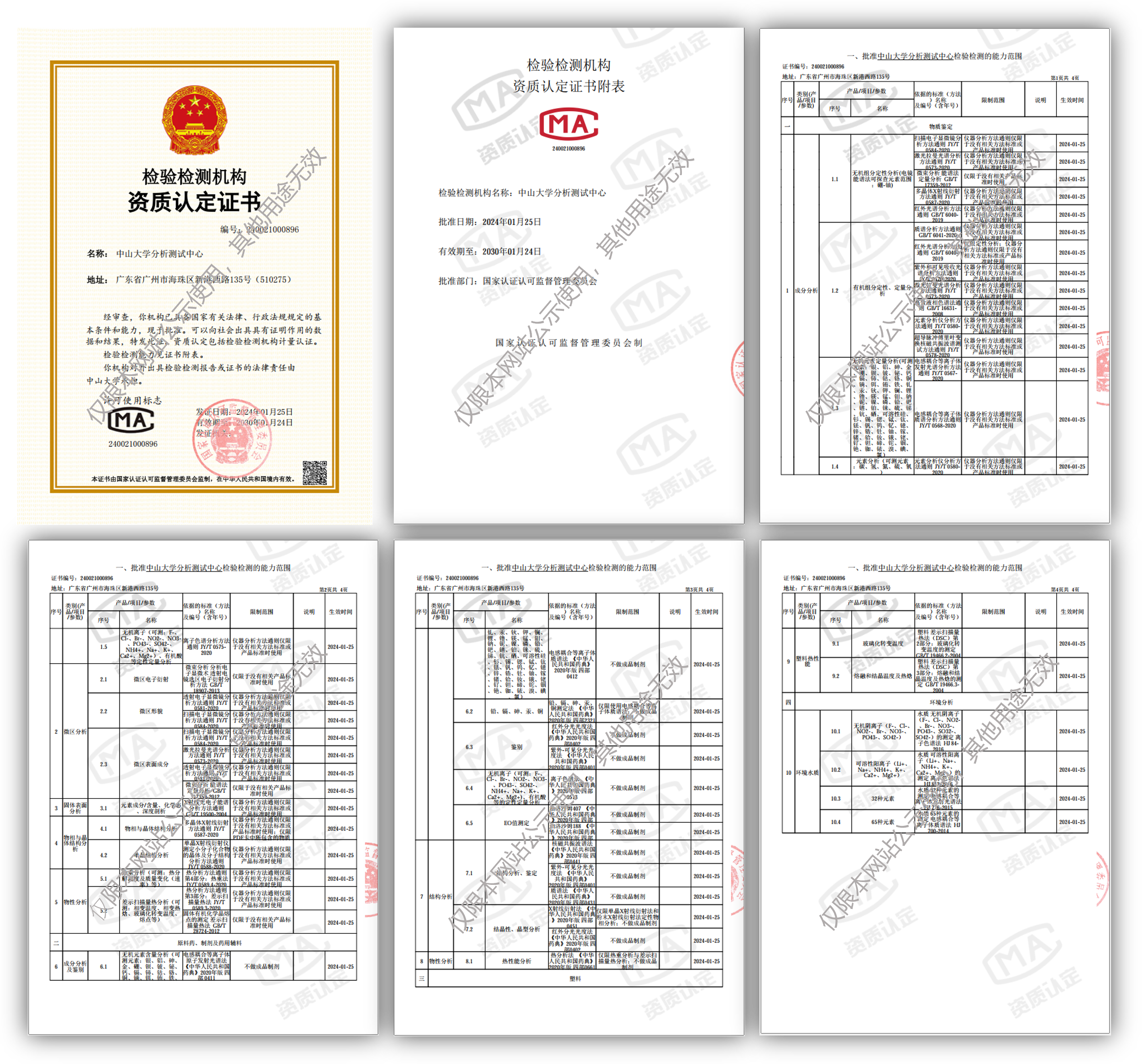 如需资质认定证书复印件,请与yl1111永利集团分析测试中心联系。(电话:020-84113210)