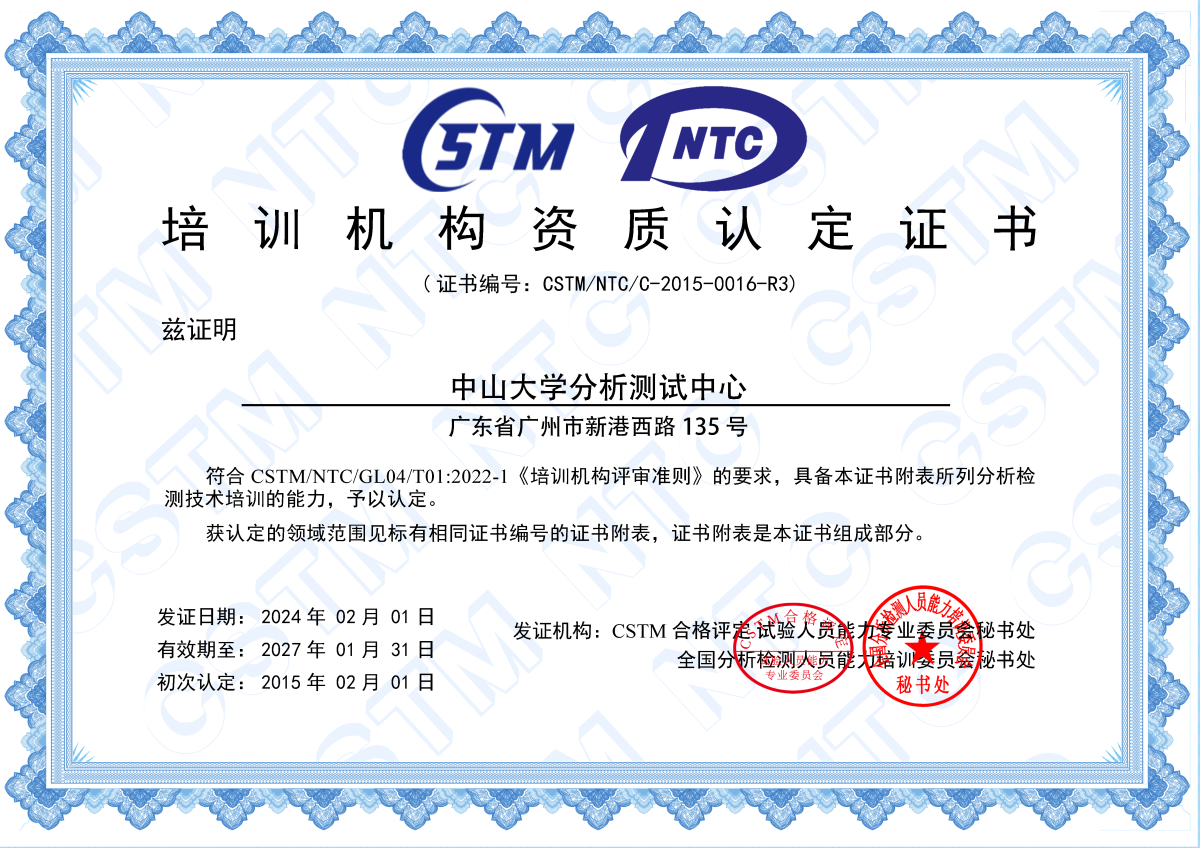分析测试中心于2014年11月20日通过NTC评审组的考核,首次获得全国分析检测人员(NTC)能力培训和考核基地资质,其中12项培训/考核项目、20名技术人员获得相关的教师培训/考核资质,成为NTC秘书处的培训/考核基地之一。2019年通过NTC的严格考核,又有1项分析技术纳入培训/考核项目,3位老师获批或获得NTC培训/考核教师资质。按照NTC秘书处的要求,NTC培训/考核基地需进行三年一次的资质复审。2018年和2021年,中心两次通过了NTC秘书处组织的培训/考核基地资质复审,目前共有13项测试技术和28位老师具有相关测试技术的培训/考核资质。这对保障国家科研、经济、国防建设中分析检测数据的准确性、可靠性和有效性具有重要意义,同时也将为学校培养更加专业的实验技术人才,为我校高水平大学建设做出贡献。