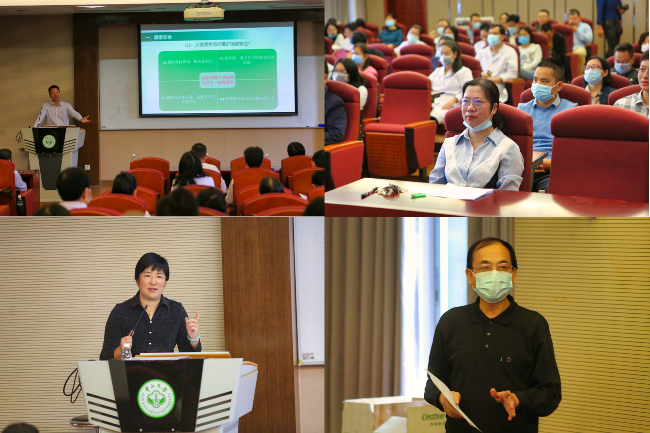 上午9点,首先在测试大楼420会议室进行了安全知识讲座,保卫处古添雄副处长为师生们进行了《你我同心 安全同行》安全教育专题讲座,通过生动的讲述与案例,从国家安全、公共安全、个人安全三个方面,全方位讲述安全的内涵与面对安全问题时应采取的正确防护措施。参与师生们纷纷表示,讲座让自己的安全意识得到了进一步的提高,了解到了在信息时代下如何保障国家与个人的安全,掌握了多种安全危害发生时的应对技巧,并表示会时刻谨记将“安全重于泰山”带入工作与生活中,为安全校园、安全社会贡献自己的力量。