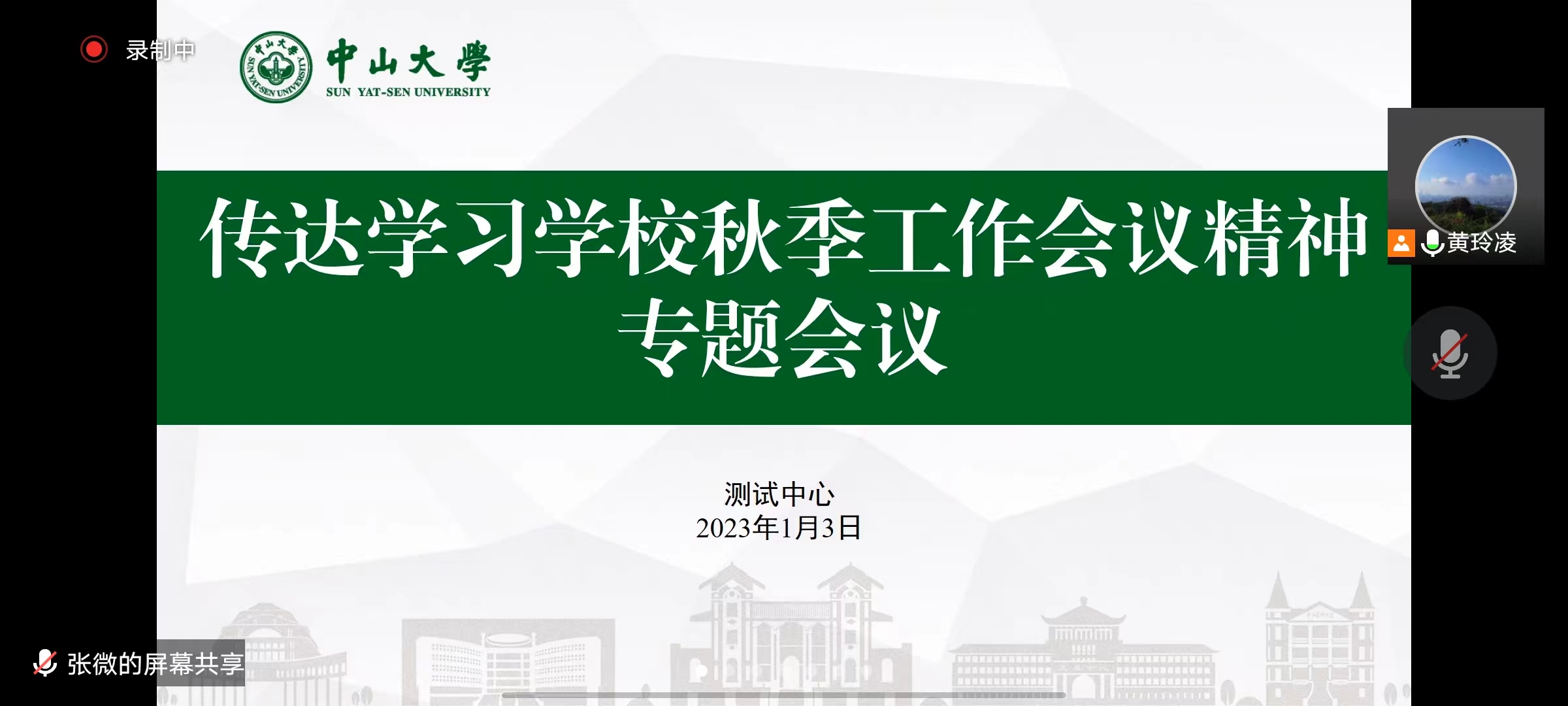 为深入贯彻落实学校秋季工作会议精神,测试中心分别在12月26日的办公例会上和1月3日全体人员会议上对校长高松院士的主题报告、校党委书记陈春声教授大会总结报告进行了传达学习研讨,并在1月3日传达学习了刁振强副书记作的“坚决贯彻落实党的二十大关于全面从严治党的战略部署 为学校人才培养中心工作营造风清气正政治生态”专题报告。