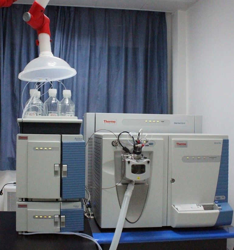 该仪器具可加热的ESI源(HESI-II)、纳喷ESI源(NSI),以及可支撑原位质谱分析的DART 实时直接分析离子源和LESA多通道纳喷离子源, 并配置了Accela 1250 LC超高压液相色谱系统和EASY-nLC 1000纳流液相色谱。