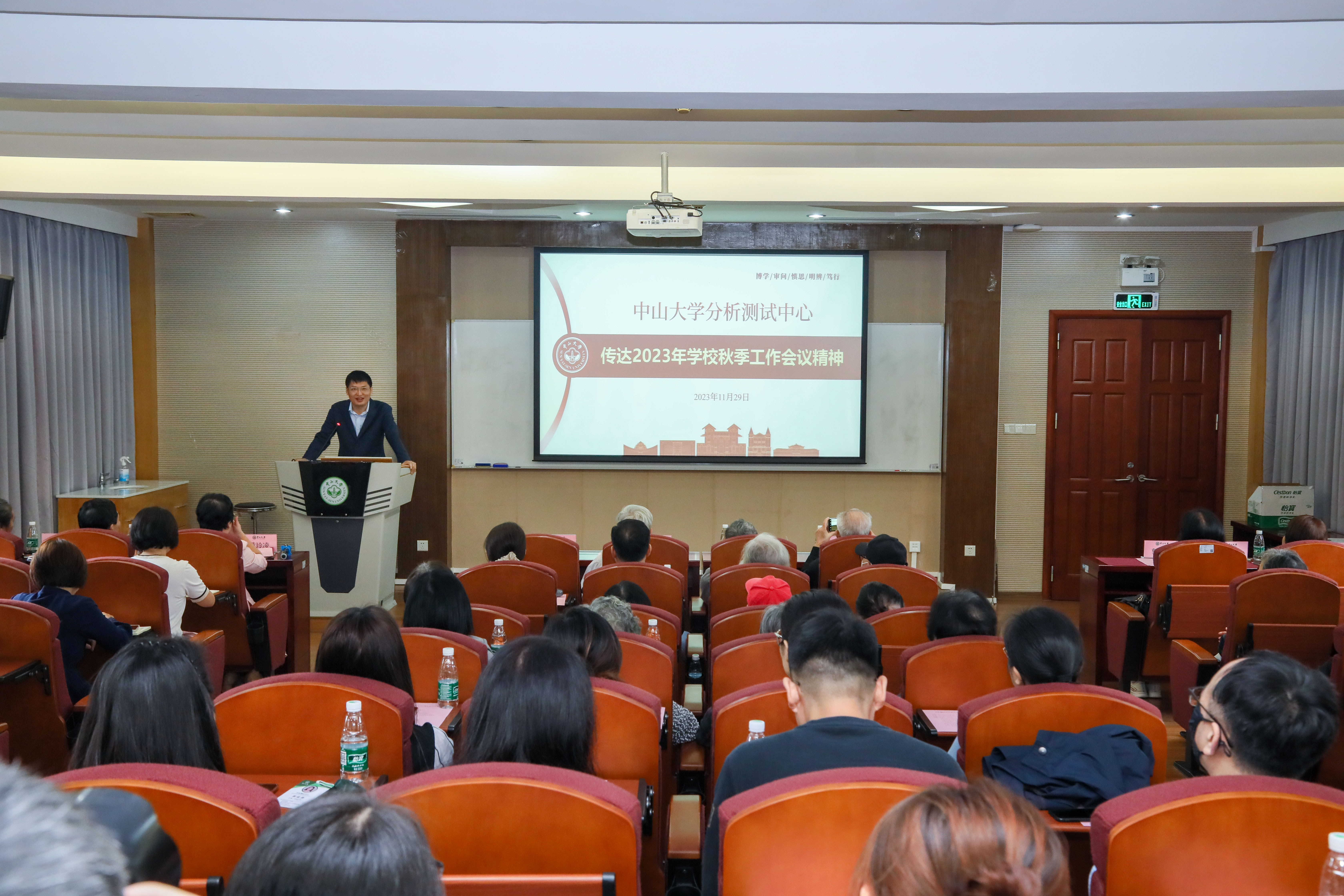 2023年11月29日上午,分析测试中心在测试大楼420室召开教职工大会,传达2023年学校秋季工作会议精神。中心主任吴丁财教授、张堃副主任、黄玲凌副主任,部分离退休老同志及全体在职教职工共70余人参加会议。