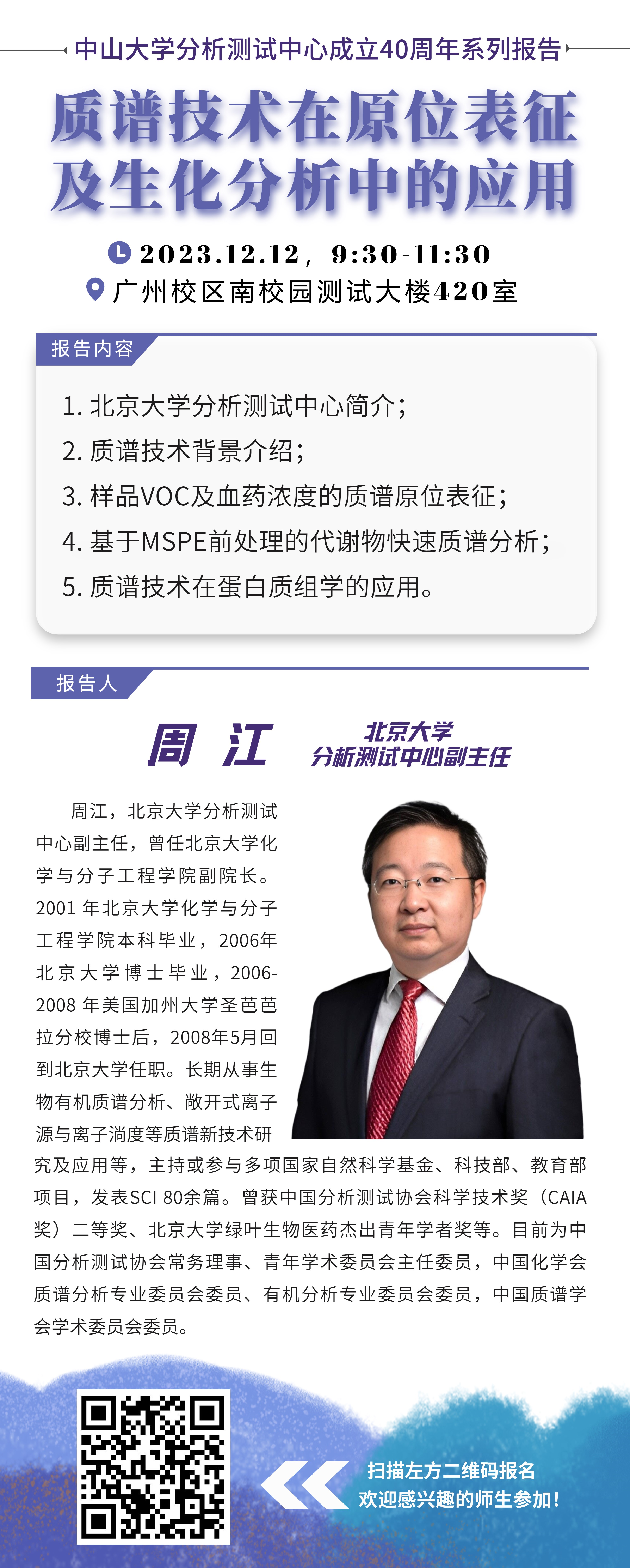 导航痕迹 yl1111永利集团分析测试中心 【yl1111永利集团分析测试中心成立40周年系列报告】周江:质谱技术在原位表征及生化分析中的应用 扫描此二维码分享 【yl1111永利集团分析测试中心成立40周年系列报告】周江:质谱技术在原位表征及生化分析中的应用 发布人:张博琳 发布日期:2023-12-07
