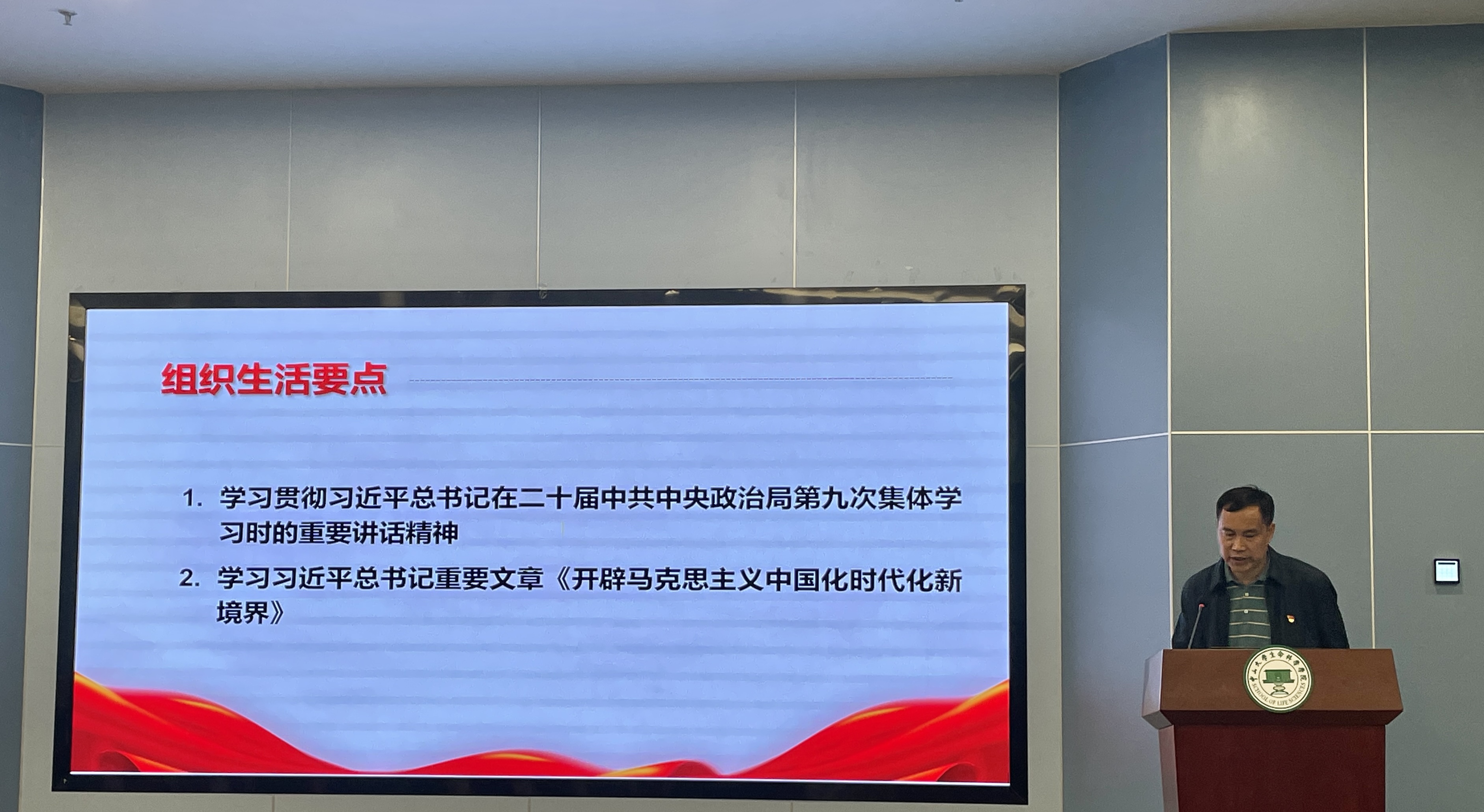 在理论学习环节中,分析测试中心党支部李玮副书记和生命科学学院动物学教师党支部覃靖凯同志分别进行了导学。大家围绕贯彻习总书记在二十届中共中央政治局第九次集体学习时的重要讲话精神、习总书记重要文章《开辟马克思主义中国化时代新境界》、习总书记关于人事人才工作的重要论述等内容进行学习和讨论。