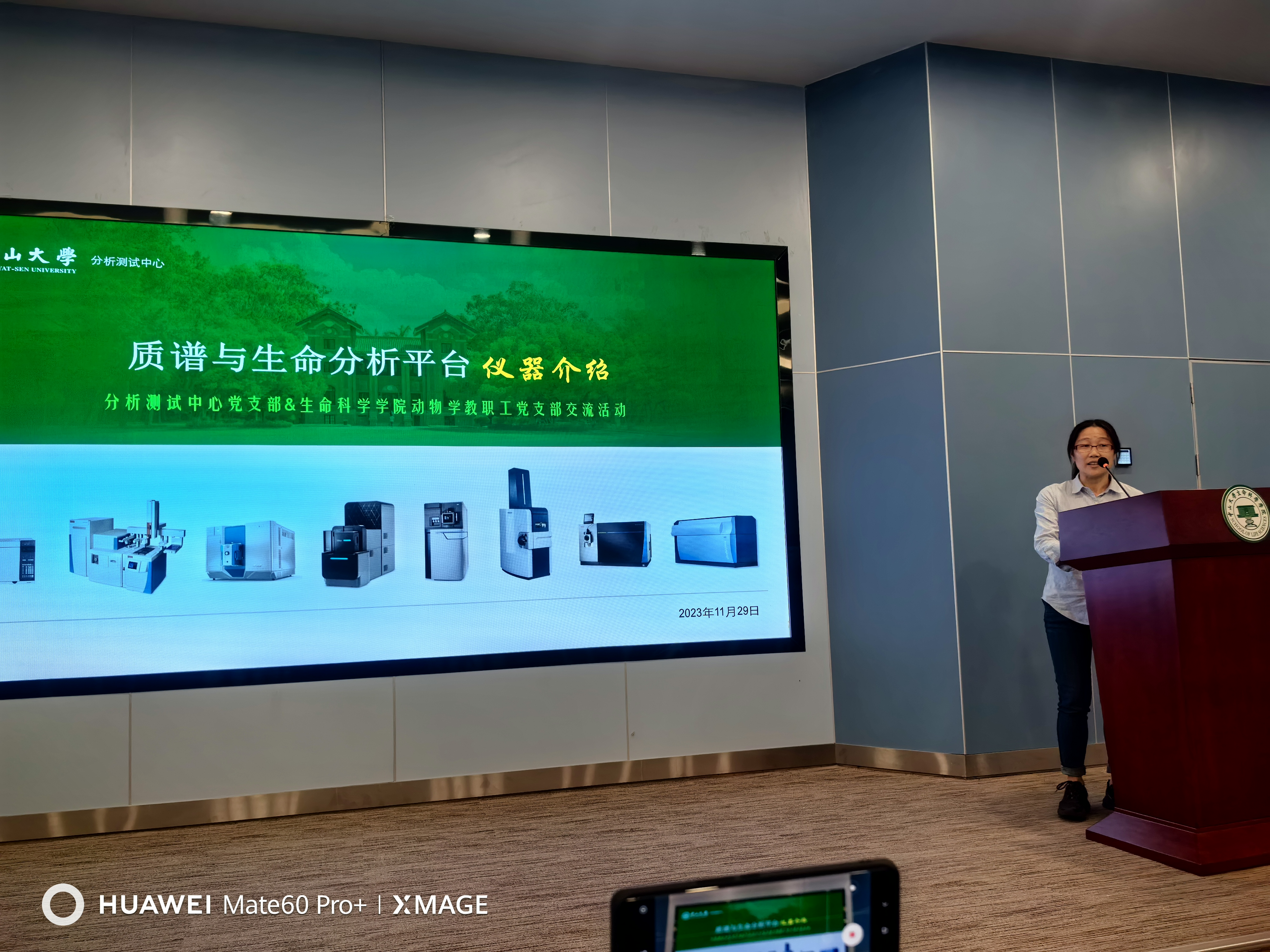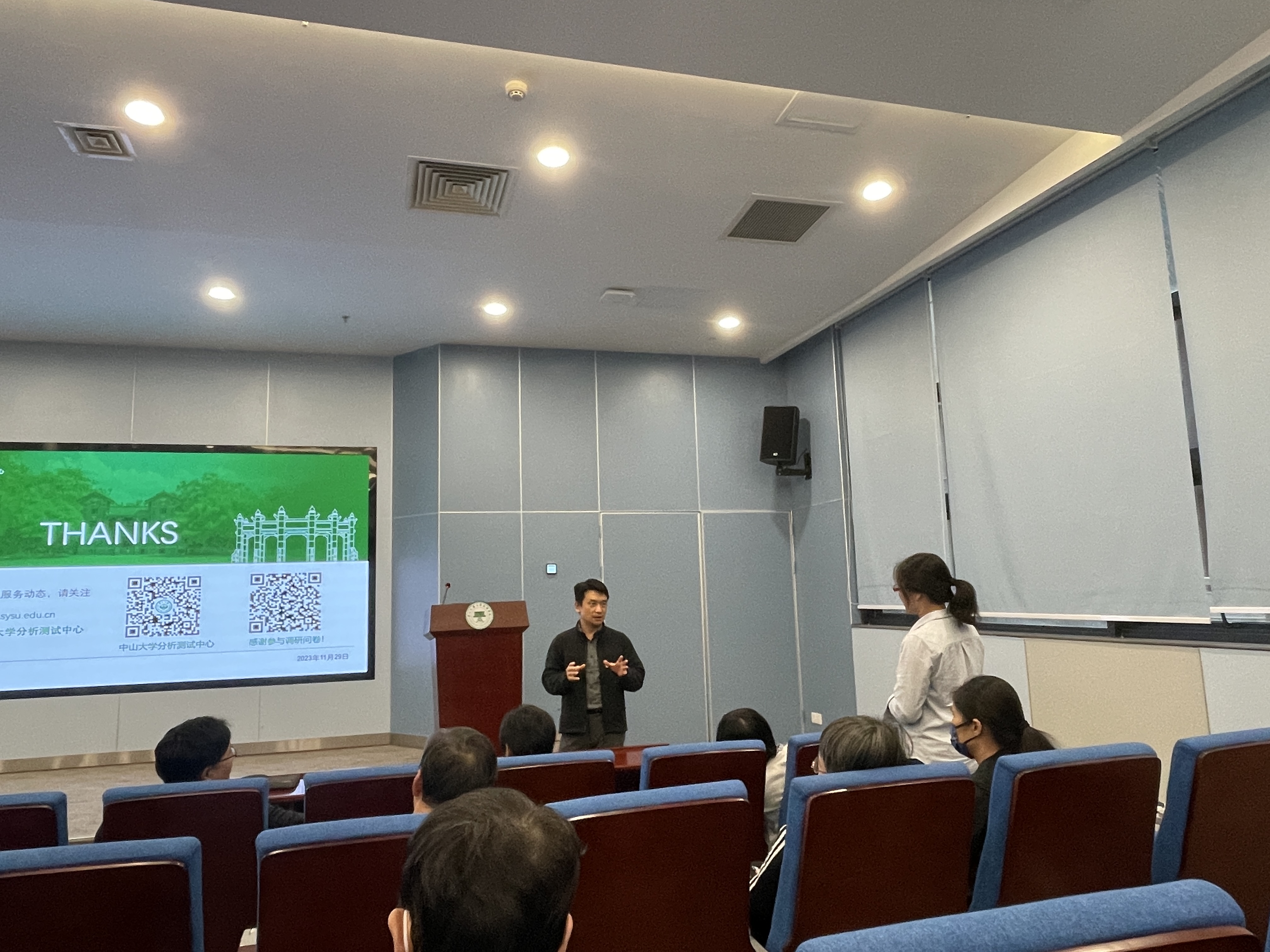 在业务交流环节,分析测试中心党支部的党员代表方玲同志和董鑫同志就相关仪器的原理、样品的准备过程以及结果分析等方面向党员同志们做了介绍,并对动物学党支部教师党员提出的相关测试问题进行了详细解答。同时发放了调研问卷,详细了解了大家的测试需求、技术服务需求等。