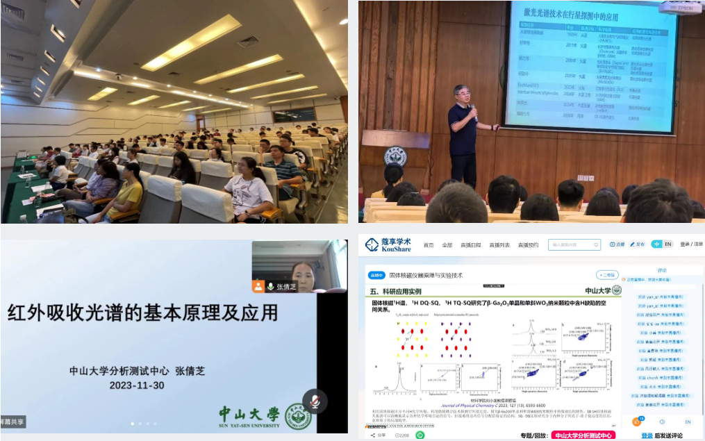 实验技术专题讲座——2023年中心针对校内实验技术人员和学生对仪器设备和测试技术的需求,有计划开展相应实验技术专题讲座9次,由中心资深实验技术人员开展《X射线多晶衍射仪及其应用》《透射电子显微镜样品制备技术分享》《拉曼光谱学的原理、技术与应用》《固体核磁仪器原理与实验技术》等专题培训,共1.3万余人次(含网络平台)参加,广受师生好评。