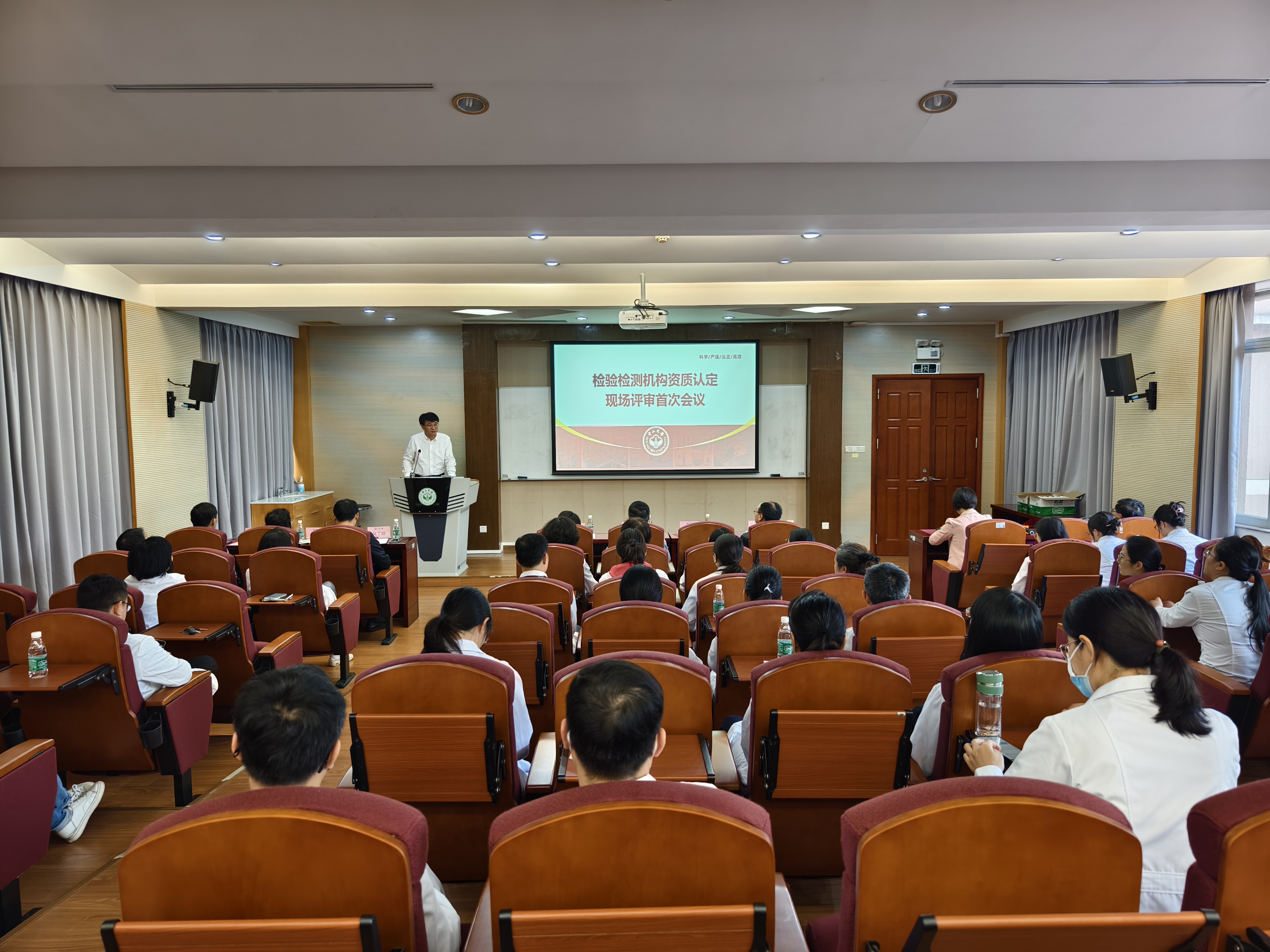 随后,评审组组长刘文齐教授就评审目的和依据、评审范围和方式,以及评审日程和分工进行了详细介绍。分析测试中心副主任张堃从中心的基本情况、业务运行及管理、质量控制活动和审核活动等方面汇报了分析测试中心的资质认定工作和质量管理体系运行情况。