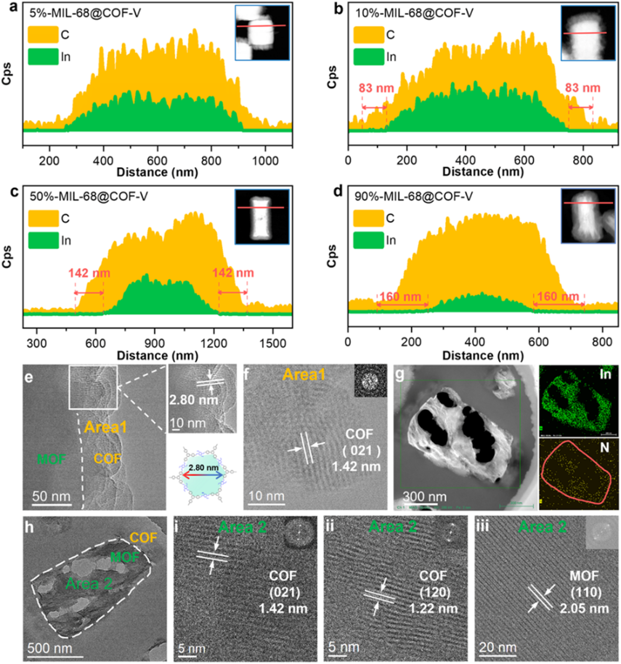 图1 MIL-68@COF-Vs材料的TEM表征(详见原文Figure 2)