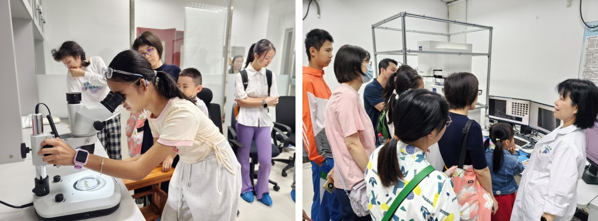 在老师的带领下,参观者分批次进入实验室,近距离接触并了解X射线光电子能谱仪、组学与质谱成像系统、固体核磁共振波谱仪、电子显微镜等大型仪器设备的工作原理与实际应用。这些平时难得一见的“科学巨擘”不仅激发了小朋友们对科学的无限遐想,也让家长们感受到了科技的无穷魅力。