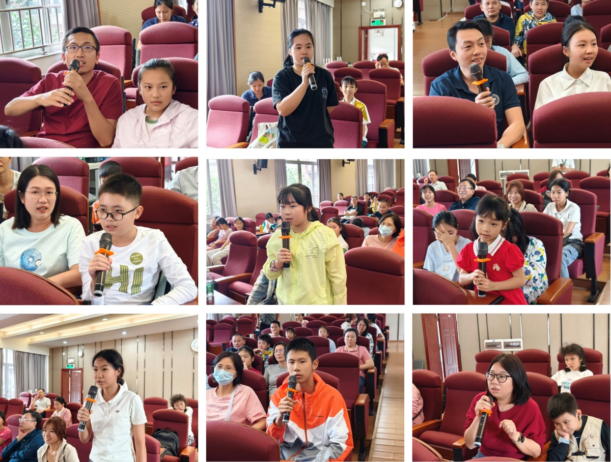 科普结束后,家长和孩子们纷纷举手提问,家长们的问题专业颇具深度,孩子们的问题充满童趣和好奇,老师们逐一详细解答,现场气氛热烈。