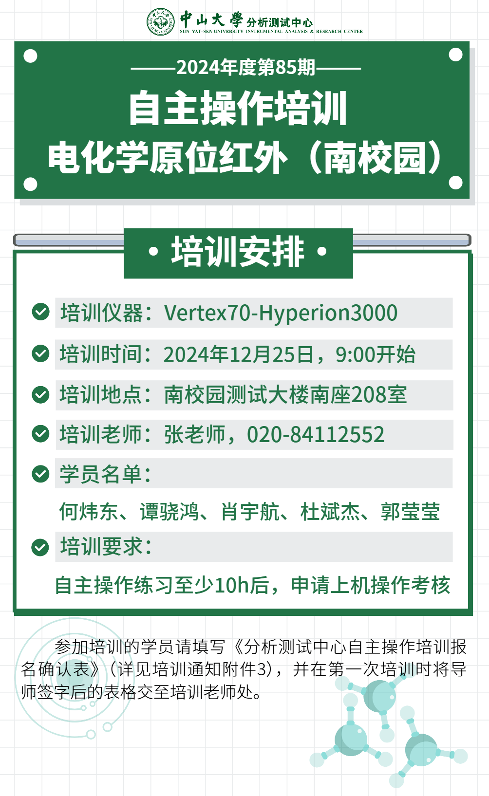 自主操作培训(2024年度第85期)| 电化学原位红外(南校园)