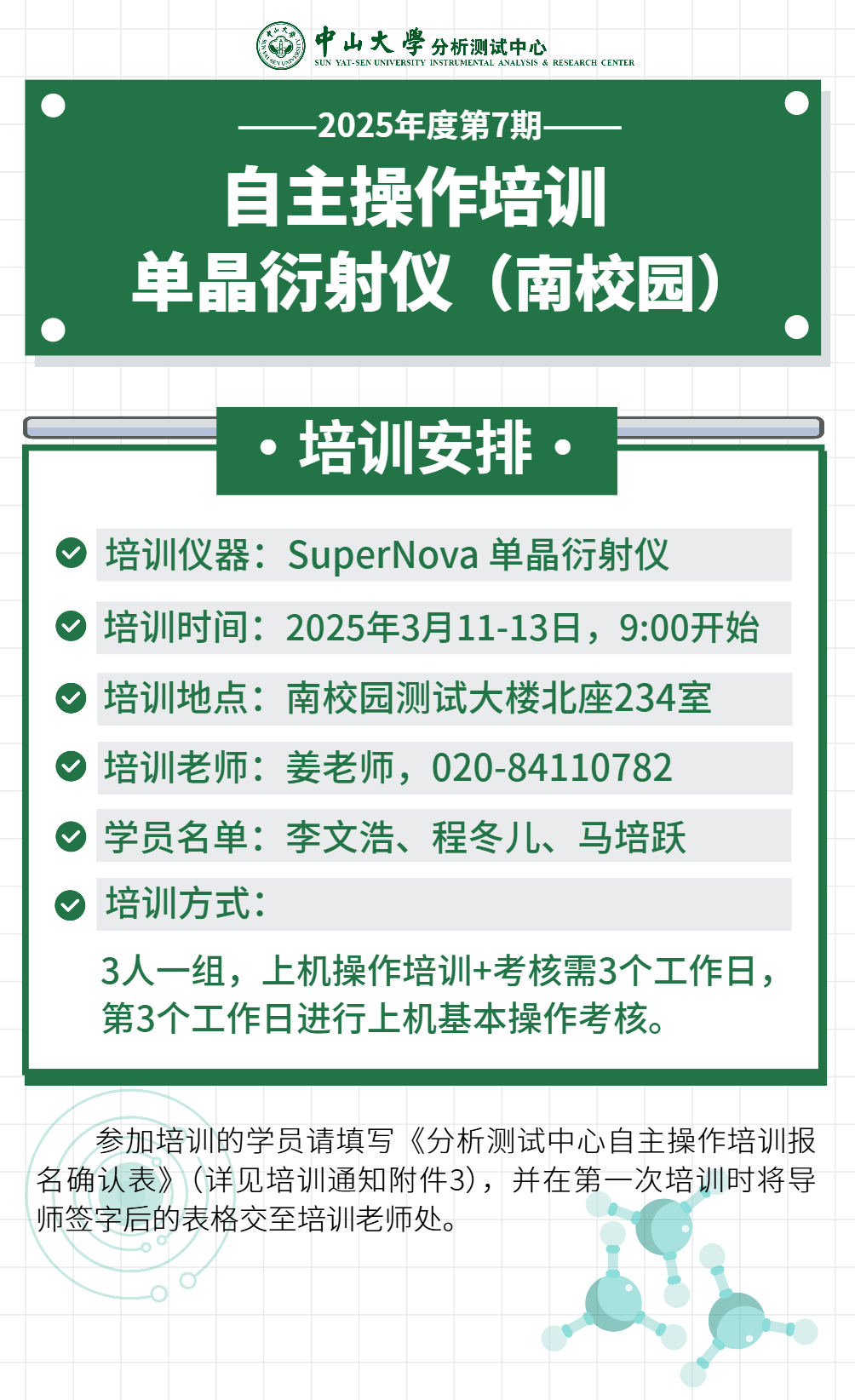 自主操作培训(2025年度第7期)| SuperNova 单晶衍射仪(南校园)