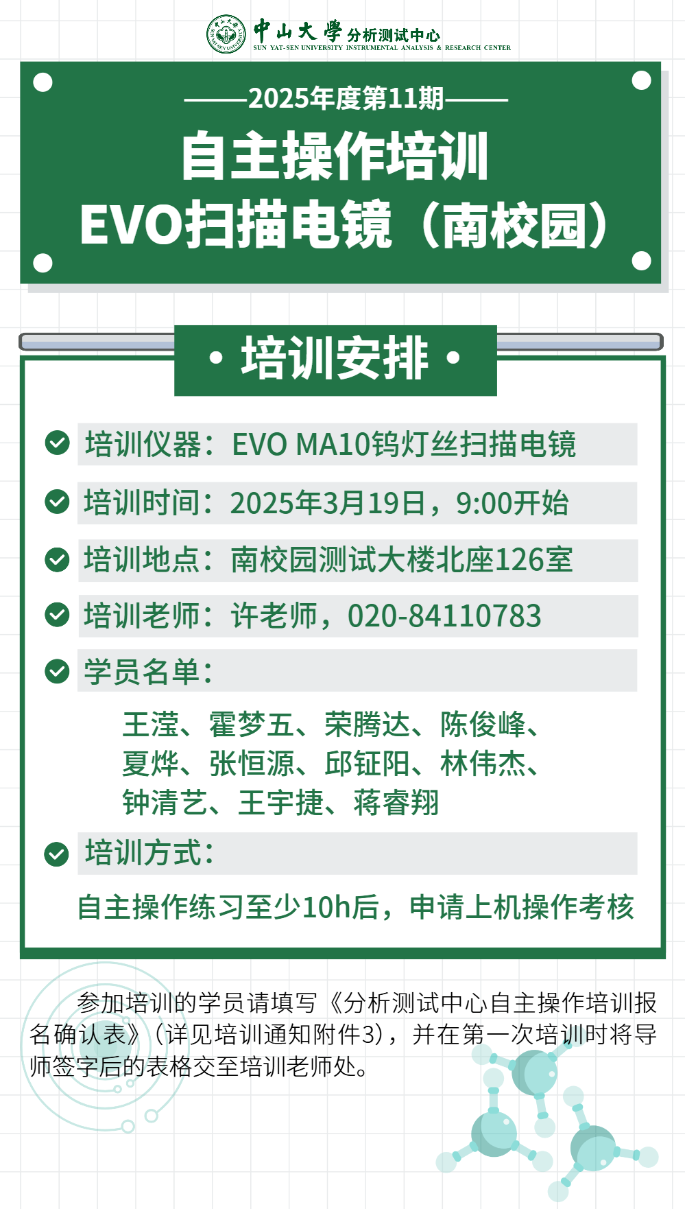 自主操作培训(2025年度第11期)| EVO扫描电镜(南校园)