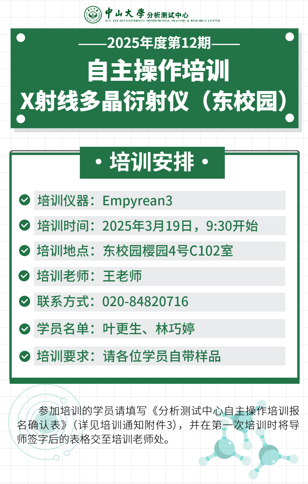 自主操作培训(2025年度第12期)| X射线多晶衍射仪(东校园)