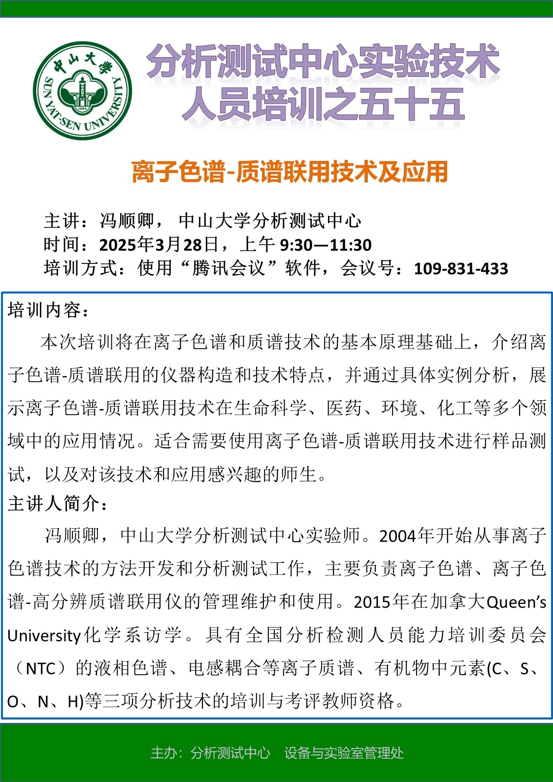 导航痕迹 yl1111永利集团分析测试中心 分析测试中心实验技术人员培训之五十五:离子色谱-质谱联用技术及应用 扫描此二维码分享 分析测试中心实验技术人员培训之五十五:离子色谱-质谱联用技术及应用 发布人:张锦 发布日期:2025-03-19