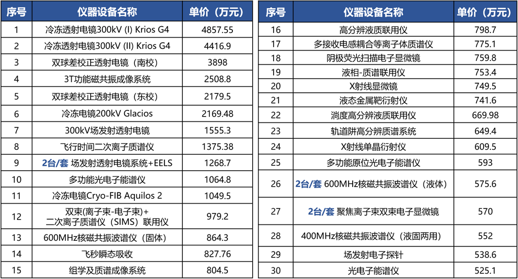 (分析测试中心500万以上大型仪器设备)